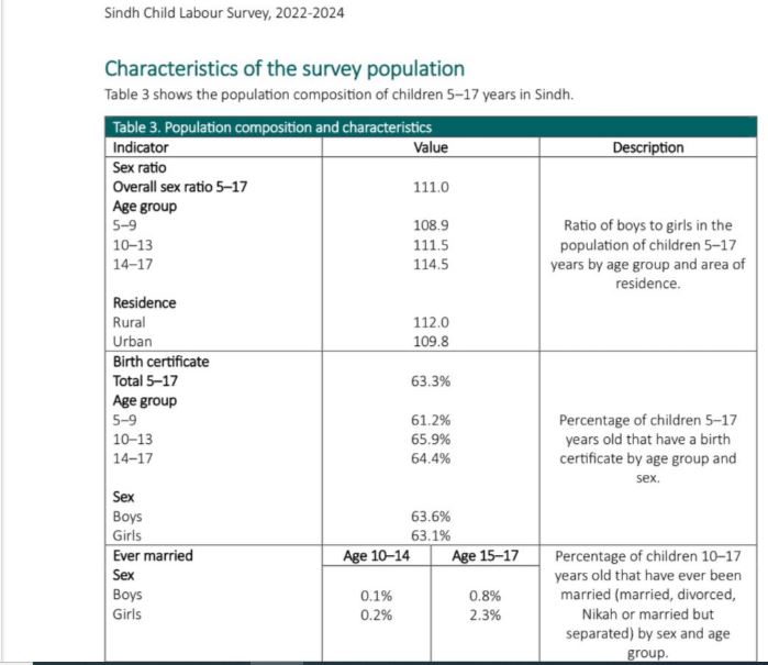 ڈائریکٹر جنرل محکمہ محنت سندھ محمد علی شاہ کا کہنا ہے کہ سروے محکمہ محنت سندھ، یونیسیف اور بیورو آف اسٹیٹکس کے اشتراک سے مکمل کیا گیا جس میں انکشاف ہوا ہے کہ 16 لاکھ سے زائد بچے چائلڈ لیبر میں مبتلا ہیں، جن میں سے نصف سے زائد 10 سے 17 سال کی عمر کے وہ بچے ہیں جو خطرناک حالات میں کام کر رہے ہیں جہاں طویل اوقات، شدید موسم اور غیر محفوظ آلات ان کا مقدر بن چکے ہیں۔